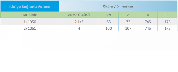 Genel Özellikler 2 1/2 – 4 itfaiye bağlantı vanası, ortadan vanalı. Maksimum çalışma bar basıncı 24. bardır